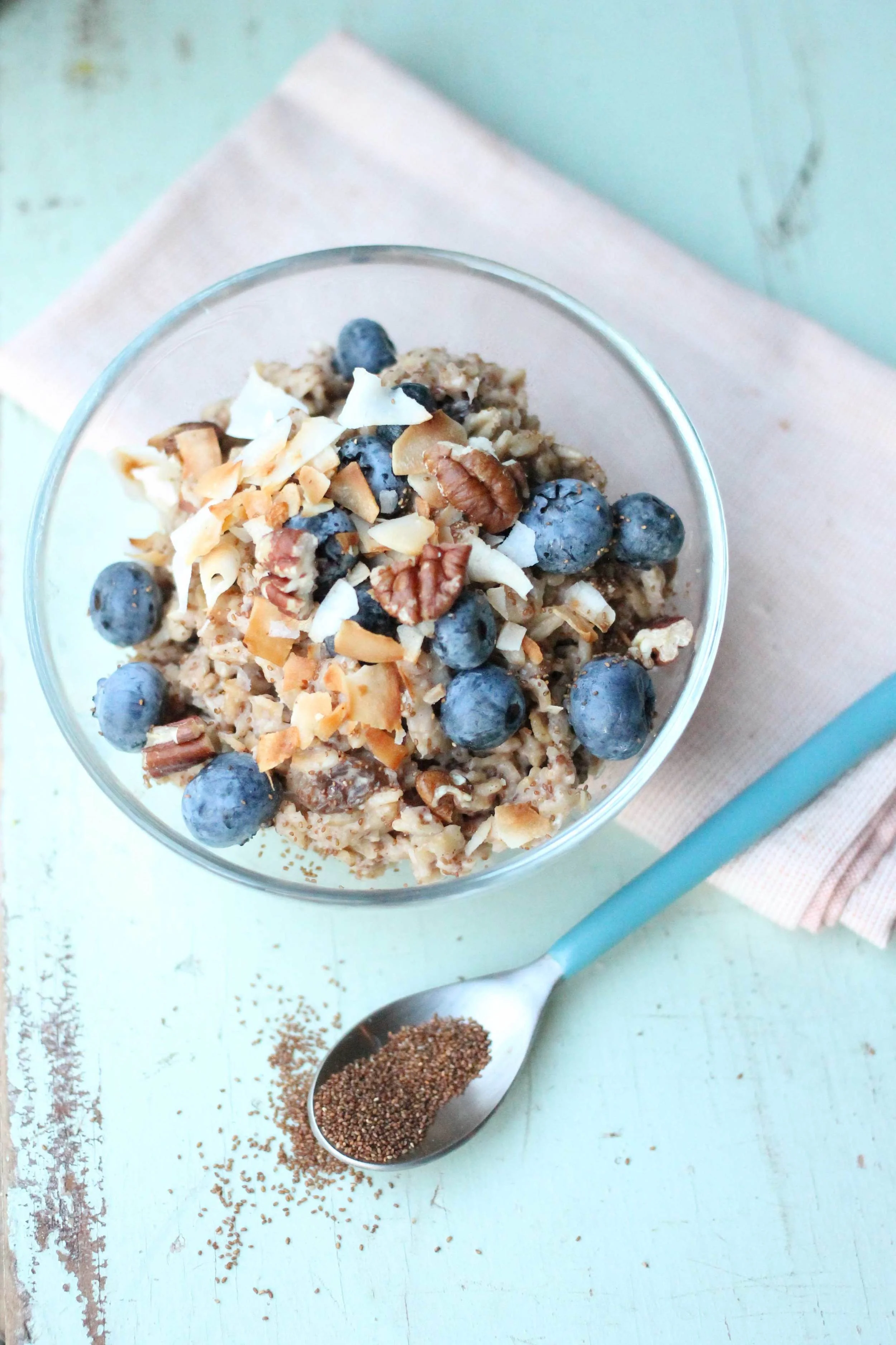 I love incorporating super foods and a combination of whole grains into our diet. One of the places I do this is in our breakfast porridge or Oatmeal as I call it.